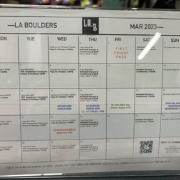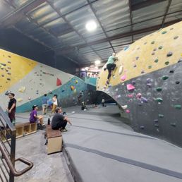 This establishment is an excellent choice for rock climbing enthusiasts as it offers a spacious area for climbing where you can hang out and enjoy the experience. The walls are adorned with informative posters detailing the various routes and their creators, as well as the daily events. It is important to note that parking can be limited, so make sure to park in a space labeled LAB to avoid being towed. Additionally, they offer yoga classes on Sunday mornings for those interested in enhancing their practice.